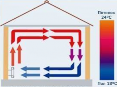 Температура и движение тепловой энергии при радиаторном отоплении.
