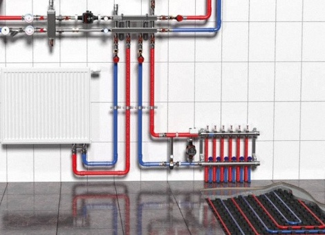 Температура и движение тепловой энергии при комбинированном использовании водяного теплого пола и радиаторного отопления.
