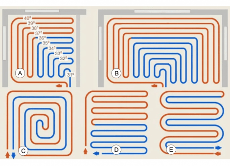 ​​​​​​​Как правильно уложить трубу  водяного теплого пола? Схемы укладки трубы водяного теплого пола.